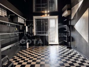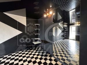 Ремонт в современном стиле минимализма (натяжные глянцевые потолки, стены обои под покраску черного цвета, пол линолеум).