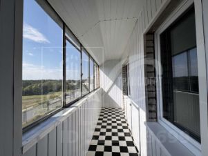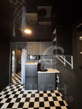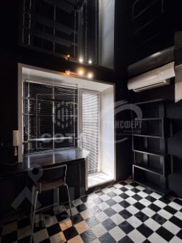 Мини-кухня с раковиной, холодильником и СВЧ, кондиционер в комнате, вместительный шкаф в коридоре, много полок, стеллаж, тумбочки, раздельный санузел, большая лоджия.