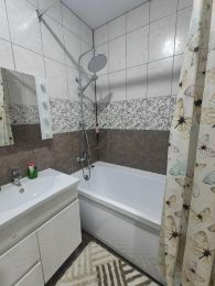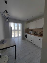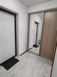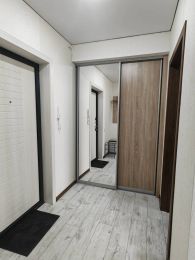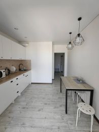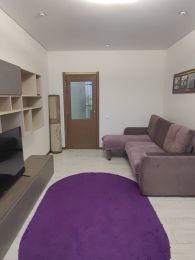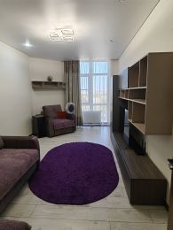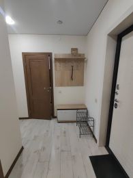 В квартире сделан современный ремонт с использованием качественных материалов. В коридоре оборудована гардеробная. Встроенная кухня, стиральная машина, холодильник, телевизор.