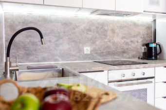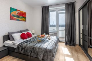 Уютные однокомнатные апартаменты с удобной кроватью, большой кухней-гостинной с панорамными окнами и лаунж-зоной на лоджии - идеально для вашего размеренного отдыха. Охраняемая зaкpытая территория, есть видeонаблюдение.