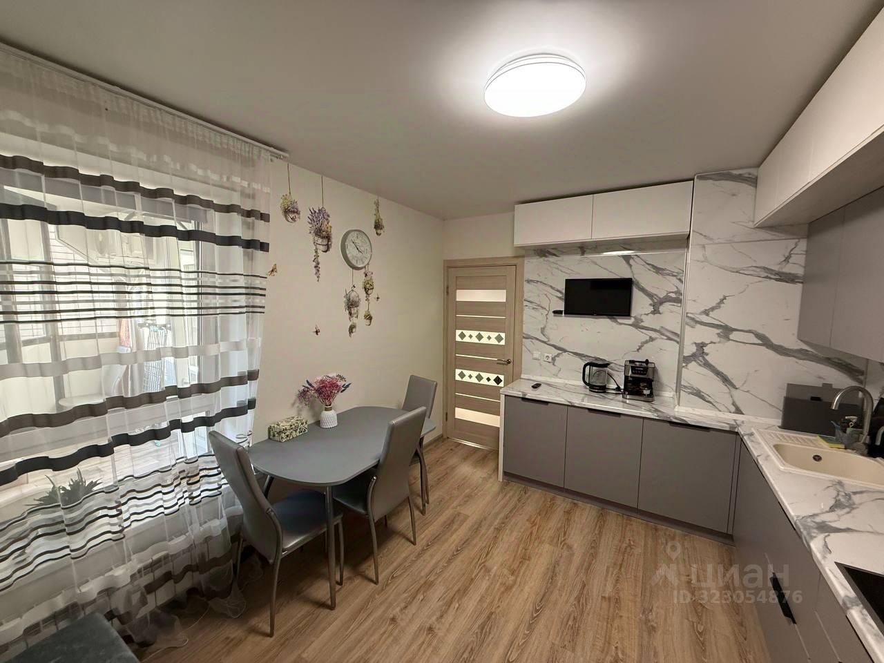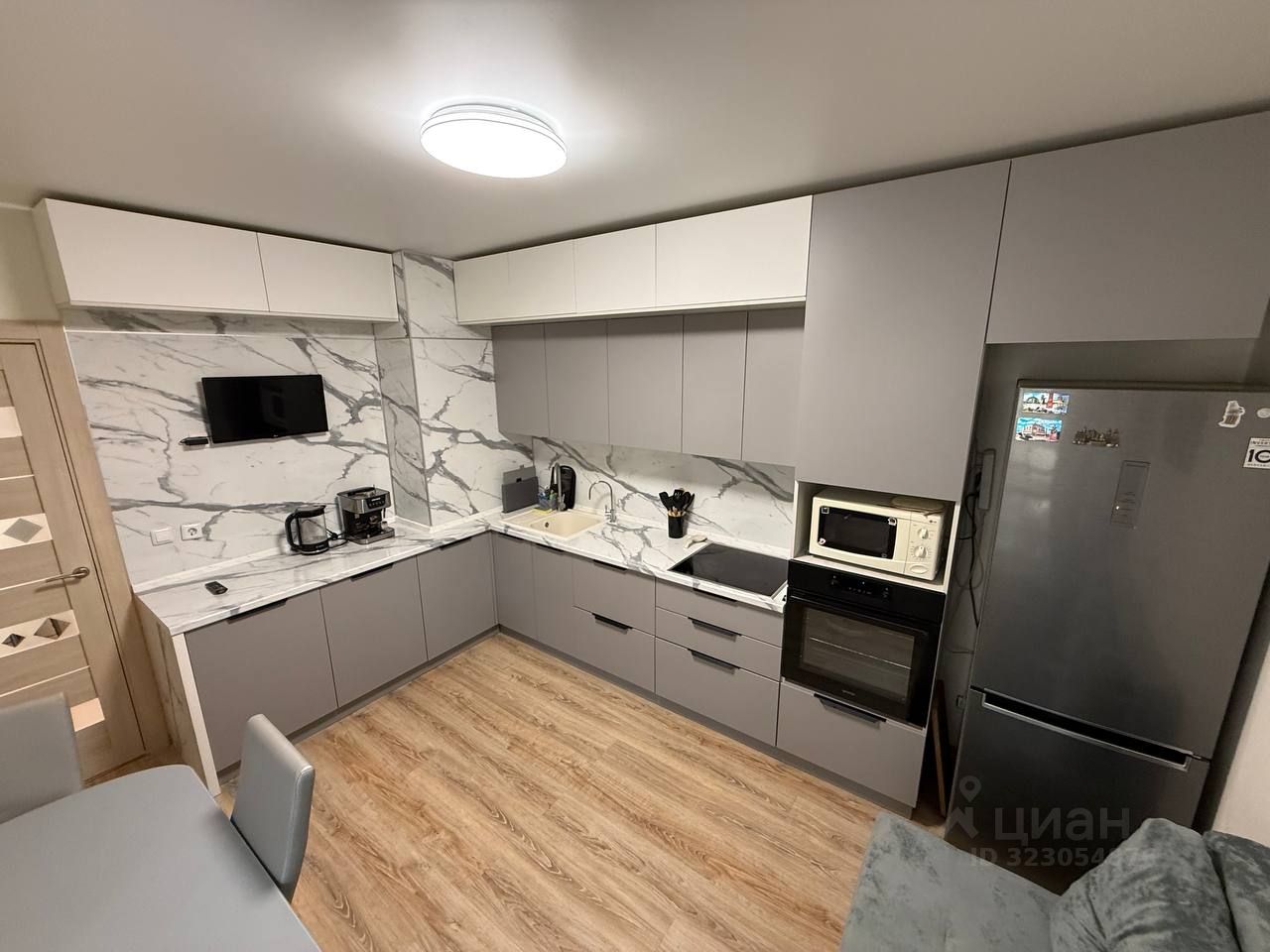 Кухня качественный мебельный гарнитур, сделанный на заказ в современном стиле, электрическая плита, духовой шкаф, вместительный холодильник, микроволновая печь, рожковая кофемашина, капельная кофеварка (как приятный бонус нанимателям), раскладной диван, телевизор со Smаrt ТV, обеденный стол (можно раскладывать), комплект стульев, набор тарелок, кружек, столовых приборов и иной кухонной утвари (полотенца, миски, контейнеры), рулонная штора (блэк аут).