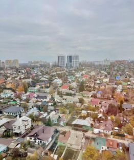Красивый вид из окна: 18 этаж, виден весь город, взгляд не упирается в соседние окна.
