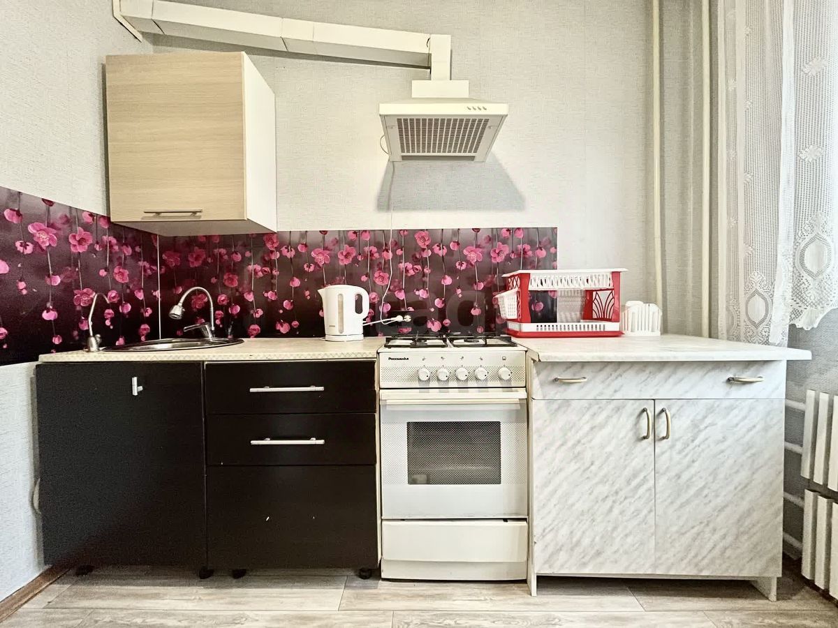 Также имеется отдельная кухня, полностью оборудованная всей необходимой бытовой техникой и мебелью: газовая плита, вытяжка, микроволновка, электрический чайник, холодильник, кухонный гарнитур, стол, стулья.