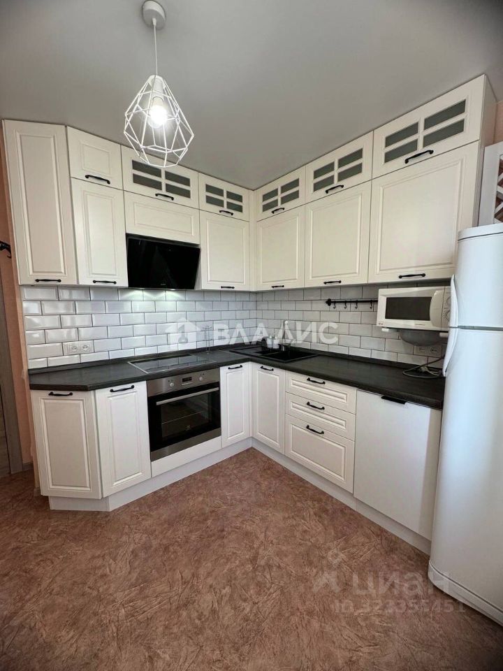 Продуманная кухня-столовая: Просторный кухонный гарнитур с большой столешницей, где удобно готовить вместе. Вся необходимая техника уже есть: холодильник, электрическая панель, вытяжка, микроволновка, чайник.