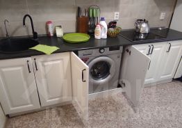 В квартире есть всё необходимое для комфортного проживания. Просторная кухня площадью 12 кв. м оборудована современной мебелью и техникой, включая холодильник. В комнате также установлена мебель. В ванной комнате имеется ванна, стиральная машина, поэтому можно сразу заехать и жить без лишних хлопот. Одной из особенностей квартиры является наличие лоджии.