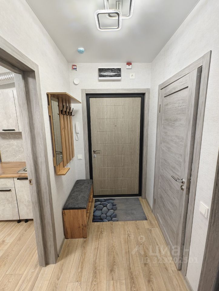 -на входе: прихожая с зеркалом и местом для хранения обуви.