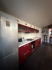 В квартире есть все для комфортного проживания: холодильник, плита, стиральная машина, кровать, диван, кухонный гарнитур.
