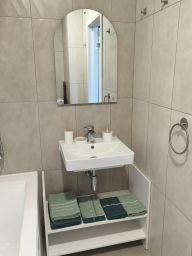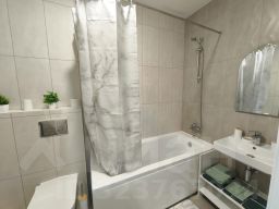 В апартаментах есть всё необходимое для комфортного проживания: новая сплит-система для создания приятной атмосферы; большая кровать 160х200 с ортопедическим матрасом и раскладной диван такого же размера; вместительный шкаф; индукционная плита, чайник, микроволновая печь, холодильник, посуда и столовые приборы; стабильный Wi-Fi и Smart TV; стиральная машина и гель для стирки; сушилка для белья, гладильная доска и утюг; новое постельное бельё высокого качества и полотенца; одноразовые зубные наборы; фен, шампунь, бальзам для волос и гель для душа.