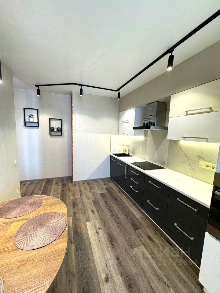 Квартира новая, после ремонта. Она оборудована бытовой техникой: стиральной машиной-автоматом, микроволновой печью, кондиционером, холодильником, посудомоечной машиной, варочной панелью, духовым шкафом и телевизором. Двуспальная кровать имеет размеры 160200 см. Также имеется просторная гардеробная.