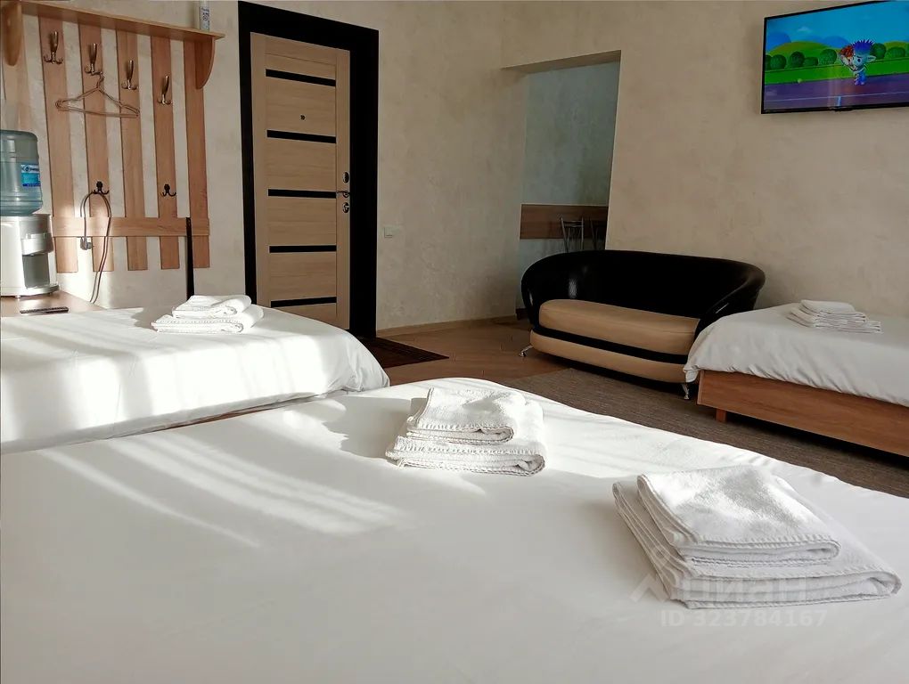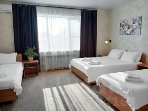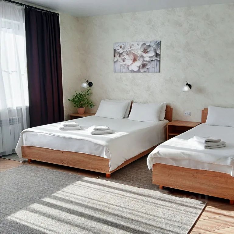 В номере предоставляется бесплатный легкий завтрак (чай, кофе, сливки, каша быстрого приготовления, масло сливочное, конфеты, печенье). Холодильник, кулер с водой и угощения для гостей в общем коридоре, рядом с номером. В душе пластиковый поддон, гель-шампунь, полотенца для ног. Так же в номере и в душевой теплый пол. Номер состоит из двух комнат (спальня и мини-кухня, а так же комната с санузлом.