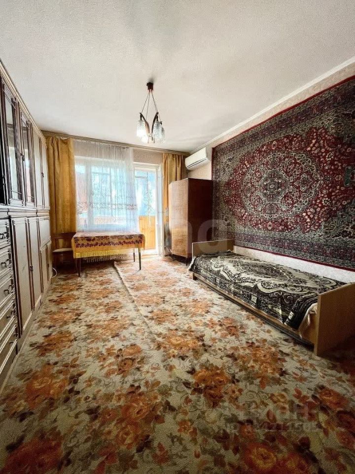 В квартире имеется просторная жилая комната, в которой установлены необходимая мебель и техника для комфортного проживания: кондиционер, кровать, шкаф/стенка, телевизор, стол рабочий, кресло.