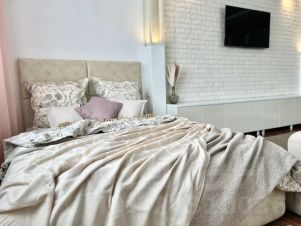 Представляем вашему вниманию наш новый объект: большая студия с панорамными окнами в пол, шикарным дизайнерским ремонтом, квартира оборудована максимальной комфортностью.