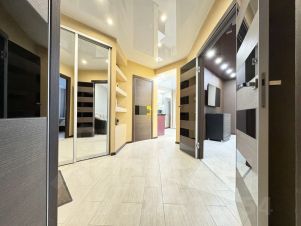 Большая 2-комн. квартира с обновленным дизайнерским ремонтом, премиальной бытовой и цифровой техникой, с панорамной лоджией, оборудованной теплым полом и удобной лаунж-зоной, а также просторным санузлом и большой ванной на 300 литров, в каждой комнате кондиционер и большой телевизор с функцией Smart TV. Также в квартире предусмотрена гардеробная.