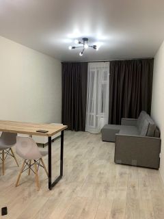 Квартира с евроремонтом, полностью готова к комфортному проживанию. В студии есть вся необходимая мебель: кухонный гарнитур, обеденный стол, место для отдыха. Для вашего удобства установлены холодильник и стиральная машина. Санузел совмещенный, оборудован ванной. Также есть лоджия, где можно наслаждаться свежим воздухом.