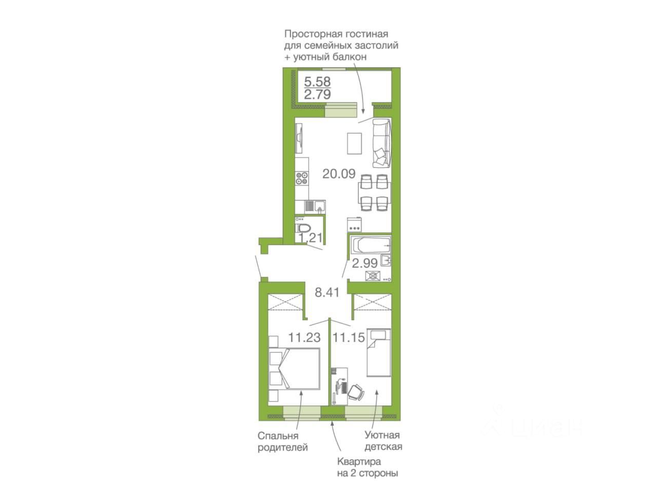 Сдаётся в аренду уютная 2-комнатная квартира площадью 56 кв.м. на 14-м этаже нового дома, построенного в 2024 году. Квартира расположена в современном жилом комплексе и имеет оптимальную планировку: жилая площадь составляет 22,5 кв.м, а просторная кухня — 20 кв.м. Высокие потолки 2,7 метра создают ощущение простора. Из окон открывается вид как на улицу, так и во двор.