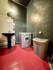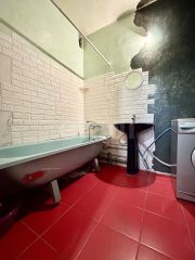 Санузел раздельный: унитаз, ванная, стиральная машина, зеркало, умывальник.