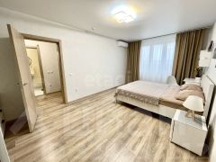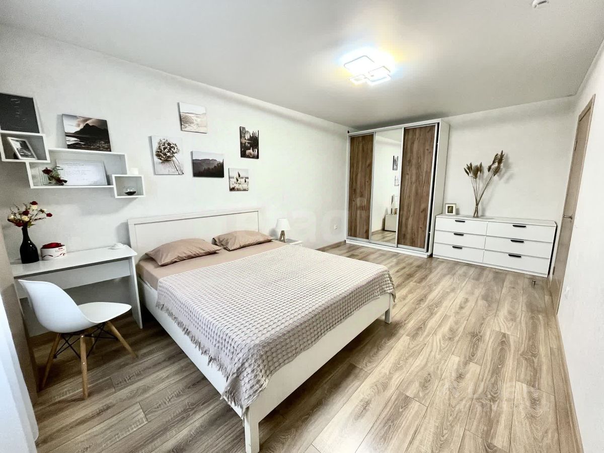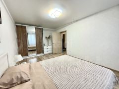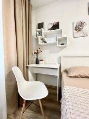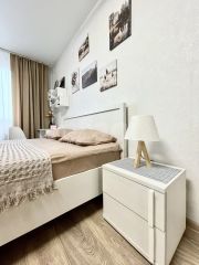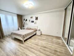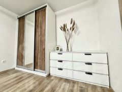 В квартире имеется просторная жилая комната, в которой установлены необходимая мебель и техника для комфортного проживания: кондиционер, кровать, комод, шкаф, стол, стул, прикроватная тумба.