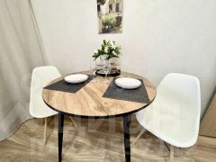 Также имеется отдельная кухня, полностью оборудованная всей необходимой бытовой техникой и мебелью: электрическая плита, вытяжка, микроволновка, электрический чайник, холодильник, кухонный гарнитур, стол, стулья.
