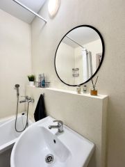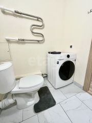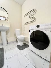 Санузел совмещен: унитаз, ванная, стиральная машина, зеркало, умывальник.