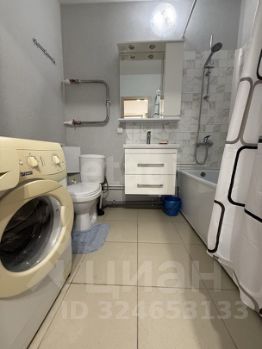 Санузел совмещен: унитаз, ванная, стиральная машина, зеркало, умывальник.