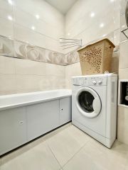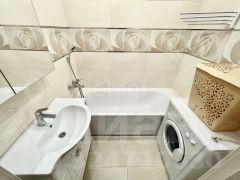 Санузел раздельный: унитаз, ванная, стиральная машина, зеркало, умывальник.