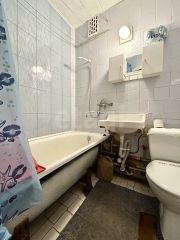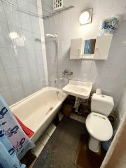 Санузел совмещен: унитаз, ванная, зеркало, умывальник.