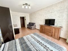 В квартире имеется просторная жилая комната, в которой установлены необходимая мебель и техника для комфортного проживания: телевизор, кровать, 2-а дивана, шкаф, комод.