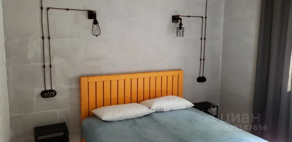 В спальнях: одна двуспальная кровать, два прикроватных светильника, две прикроватные тумбочки, комод, вешалка для одежды, кондиционер.