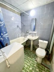 Санузел совмещен: унитаз, ванная, стиральная машина, зеркало, умывальник.