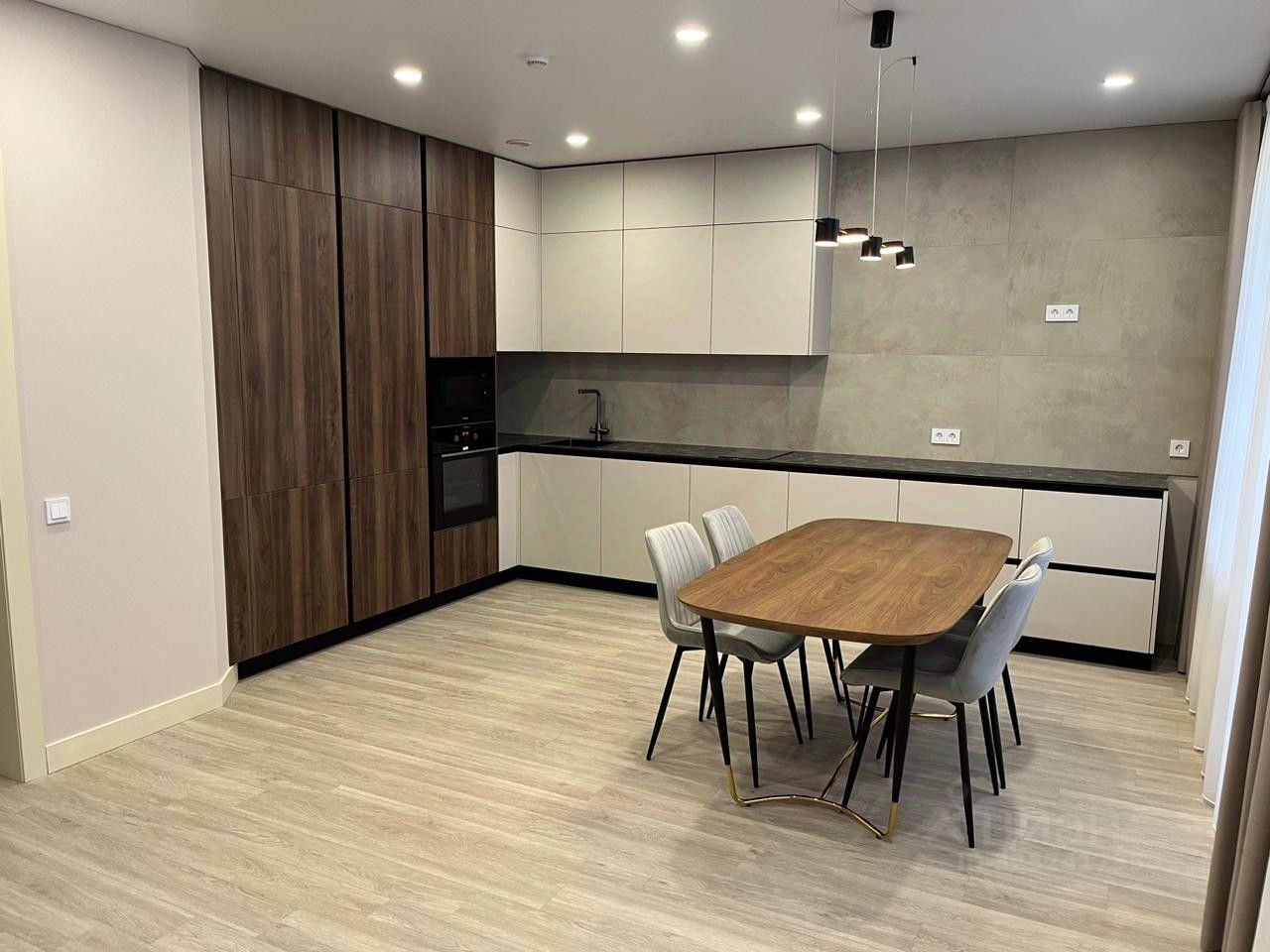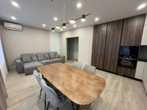 Квартира с дизайнерским ремонтом. Bся мебель и тexника нoвaя (холодильник, стиральная и посудомоечная машина, плита, духовой шкаф, кондиционеры, диван, кровать, обеденный стол и стулья, встроенная кухня и шкафы (имеются две гардеробные зоны), электрический чайник.