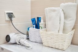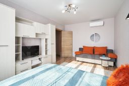 В апартаментах есть две двуспальные кровати, раскладной диван, стиральная машина,микроволновка, электрический чайник, вся необходимая посуда, утюг, фен, кабельное ТВ, wi-fi. Гостям предоставляется постельное бельё, полотенца, средства гигиены.
