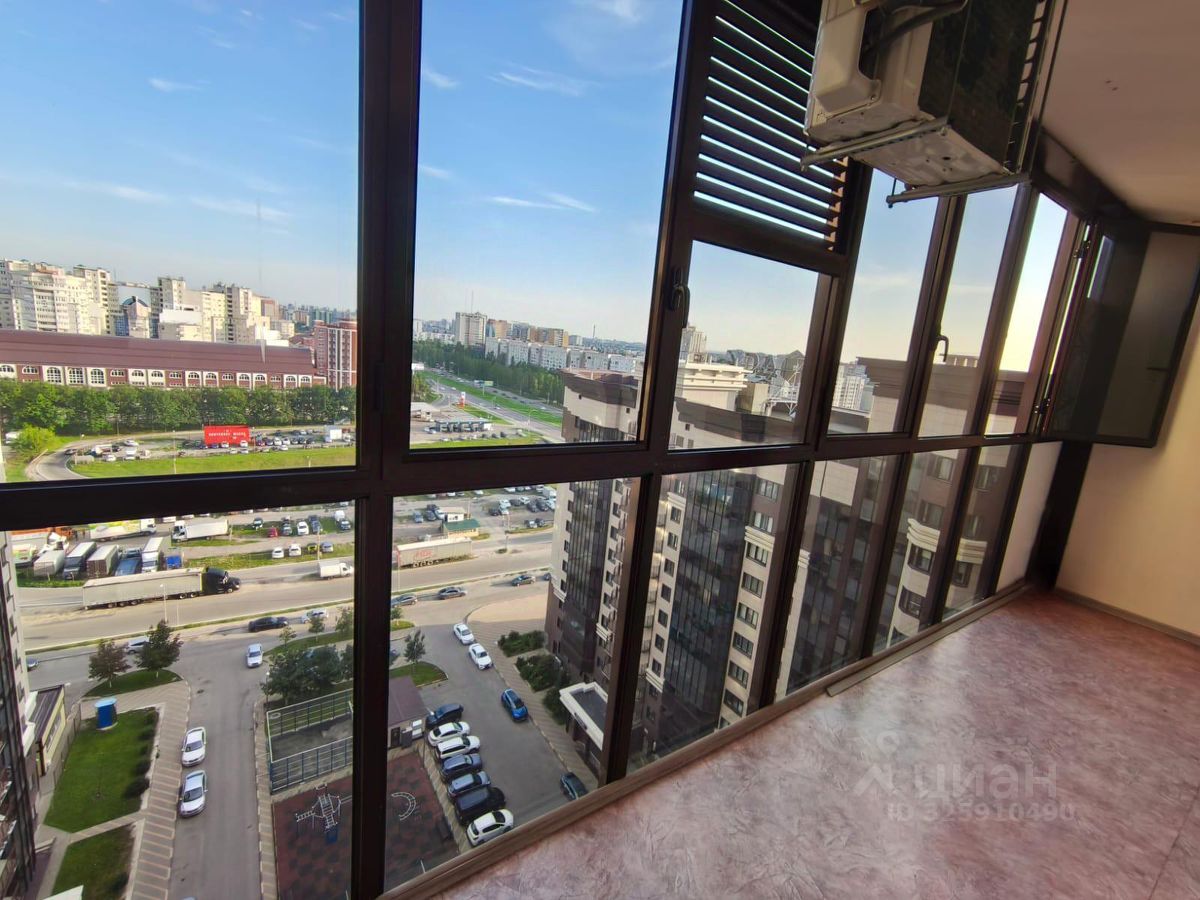 Огромный балкон с панорамными окнами в пол.