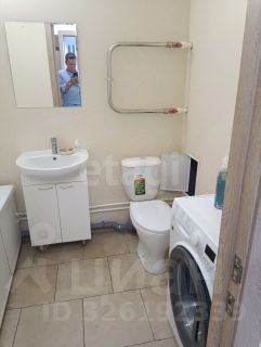 Санузел совмещен: унитаз, ванная, стиральная машина, зеркало, умывальник.