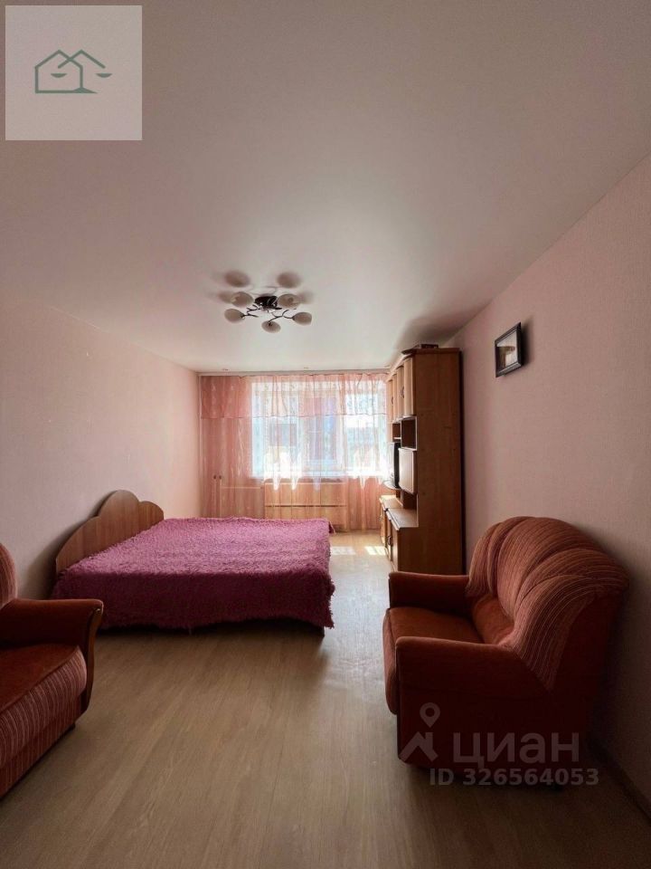 Квартира состоит из просторной комнаты, в которой есть два кресла, кровать, шкаф для всего необходимого, стол. Кухня оснащена встроенным гарнитуром, холодильником, варочной панелью, духовкой. Всё в хорошем рабочем состоянии.