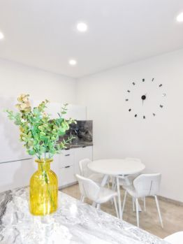 -светлая уютная студия площадью 39 кв.м. с современным ремонтом. Уютная зона отдыха с большой двухспальной кроватью. Есть диван, который при необходимости превращается в полноценную кровать. Полностью оборудованная кухня с обеденной группой.