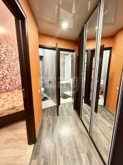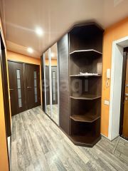 Коридор: большой шкаф купе, обувщица, настенная вешалка для верхней одежды.