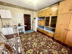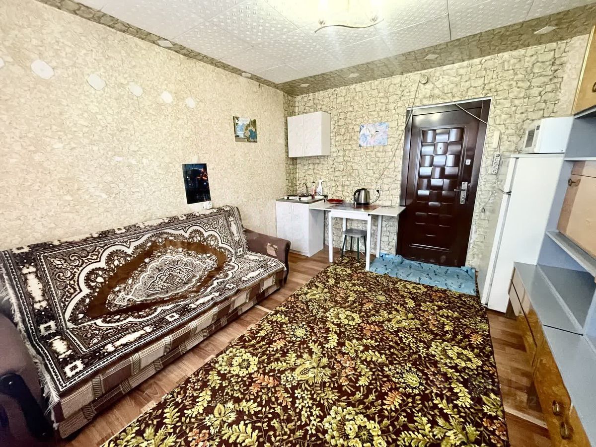 В комнате есть все для комфортного проживания: холодильник, плита на общей кухне, электрический чайник, кухонный гарнитур, мойка, стол, диван, шкаф/стенка.