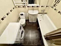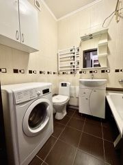 Санузел совмещен: унитаз, ванная, стиральная машина, зеркало, умывальник.