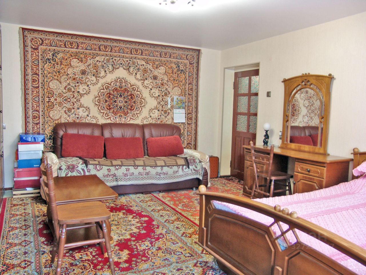 Квартира укомплектована необходимой мебелью и бытовой техникой. (большой холодильник Whirpool, 2 телевизора, стиральная машина, СВЧ печь и многие сопутствующие аксессуары). Просторная кухня (13 кв м) с выходом на застекленную и отделанную лоджию. Двуспальная кровать в основной комнате и большой диван-книжка на кухне.