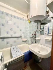 Санузел раздельный: унитаз, ванная, стиральная машина, водонагреватель, зеркало, умывальник.