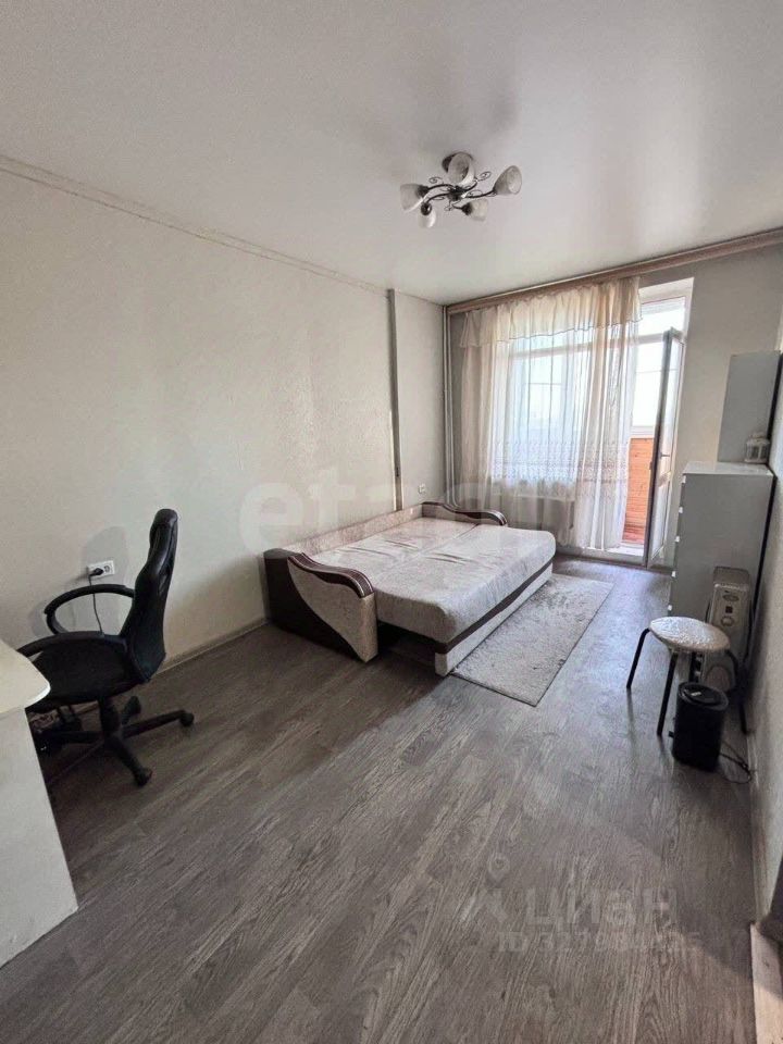 В квартире имеется просторная жилая комната, в которой установлена необходимая мебель для комфортного проживания: диван, рабочий стол со стулом, комод, напольная полка, обогреватель.
