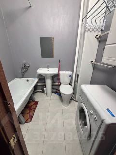 Санузел совмещен: унитаз, ванная, стиральная машина, зеркало, умывальник.