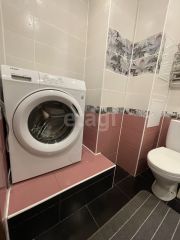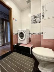 Санузел совмещен: унитаз, ванная, стиральная машина, зеркало, умывальник.