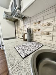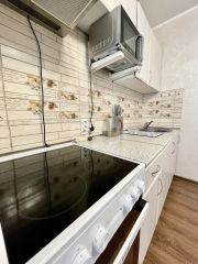 Также имеется отдельная кухня, полностью оборудованная всей необходимой бытовой техникой и мебелью: электрическая плита, вытяжка, микроволновка, холодильник, кухонный гарнитур, стол, стулья.