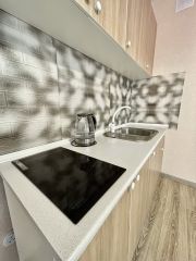 В квартире есть все для комфортного проживания: кондиционер, холодильник, микроволновка, плита, стиральная машина, электрический чайник, телевизор, Wi-Fi, телевидение, кухонный гарнитур, диван, кровать, стенка под ТВ/шкаф, шкаф.