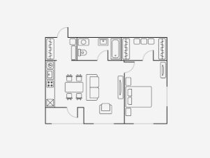 - обеденный стол со стульями на четыре персоны;
