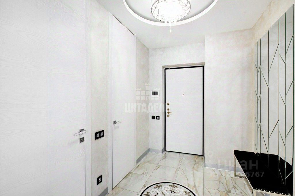 Квартира в отличном состоянии. Ремонт от дизайнера. Отделка выполнена с применением современных и дорогих отделочных материалов (паркетная доска, венецианская штукатурка, тёплые полы). Комфортная планировка: большая прихожая, две гардеробные, кухня-гостиная с обеденной зоной, две спальные комнаты (в одной комнате душевая с санузлом), большая ванная комната с душевой, гостевой туалет, лоджия.