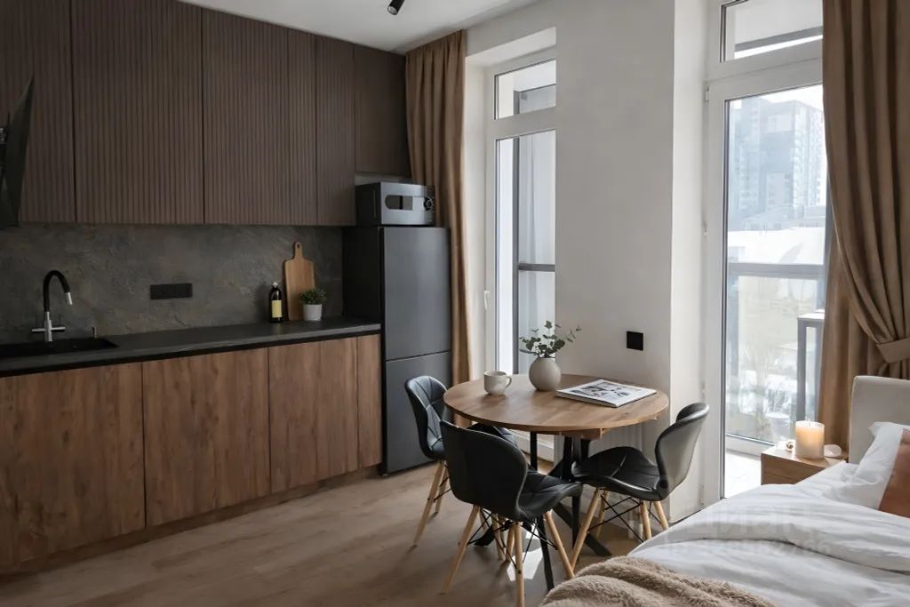 Современная дизайнерская студия сети "Неотель" на 4 этаже в жилом комплексе "Ньютон" на Московском проспекте. Стильный интерьер, продуманное пространство и всё необходимое для комфортного проживания.