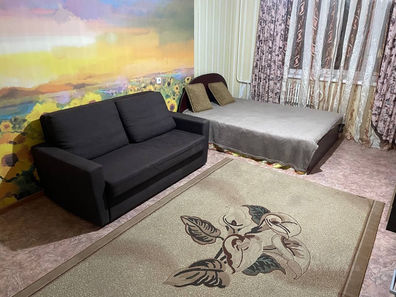 большая удобная кровать + компактный диван (для гостей или отдыха).