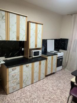 Сдается квартира в новом доме. В просторной кухне есть современная мебель и бытовая техника, включая холодильник. В комнате также установлена удобная мебель, а для вашего удобства предусмотрены телевизор и стиральная машина. Ванная комната оборудована ванной. У квартиры есть лоджия.